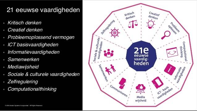 Hiernaast wordt in de afbeelding de 21. eeuwse vaardigheden kort weergegeven in een afbeelding.