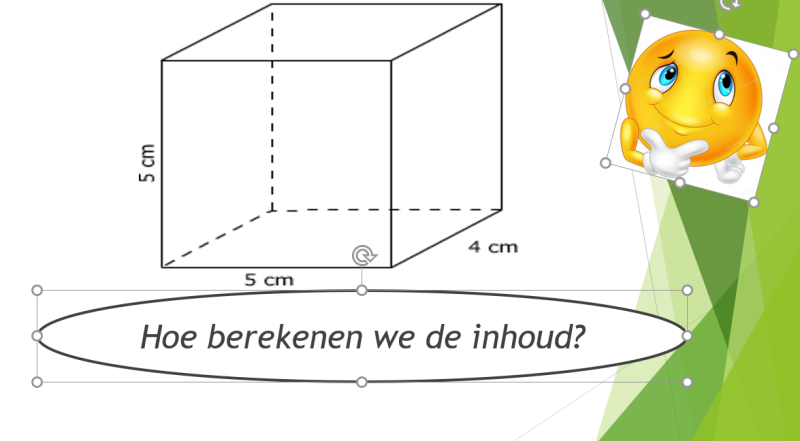 - Hoe berekenen we de inhoud van deze bak, welke formule hebben we nodig?